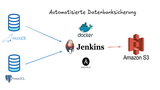 Ziel des Projektes ist die Migration bestehender MariaDB- und PostgreSQL-Datenbanken in eine containerisierte Umgebung sowie die Implementierung eines vollständig automatisierten Backup-Prozesses. Die Bereitstellung der Containerlandschaft erfolgt mithilfe von Ansible Playbooks, welche über Jenkins als Automatisierungsserver gesteuert werden. Die regelmäßigen Datenbanksicherungen werden automatisiert erstellt und zentral in einem AWS S3 Bucket gespeichert. Der Zugriff auf die Verwaltungsoberflächen ist dabei auf authentifizierte Benutzer beschränkt. Die Authentifizierung erfolgt über LDAP, während ein Reverse Proxy für eine verschlüsselte Kommunikation mittels TLS sorgt.