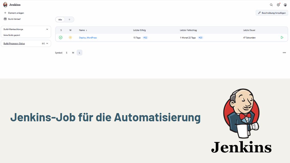 Die Bereitstellung wird über einen Jenkins-Job angestoßen. Nach Eingabe der IP-Adresse des Zielservers wird das Ansible-Playbook ausgeführt, wodurch der manuelle Prozess standardisiert wird.