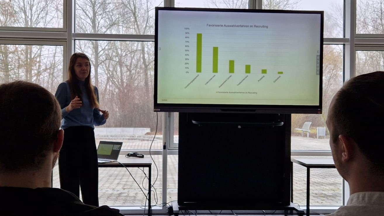 Am Ende des Trainings wurde die Referentin mit einem Präsent bedacht. „Jetzt fühlen wir uns bestens auf die bevorstehenden Bewerbungsgespräche gewappnet – jemand aus der Praxis zu haben, der neben den Fakten auch aus dem Nähkästchen plaudern kann, also wirklich erlebte Situationen erzählt, ist super“, resümierten die angehenden Wirtschaftsinformatiker.