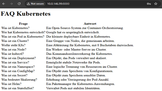 Im Rahmen des Projekts wurde eine webbasierte FAQ-Anwendung für technische Themen rund um Docker und Kubernetes umgesetzt. Die Anwendung greift auf eine angebundene Datenbank zu und wird vollständig containerisiert betrieben.
