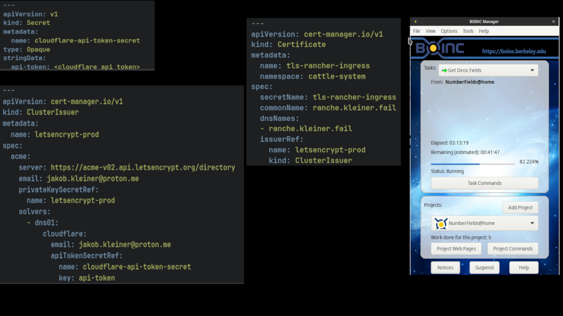 Durch die Integration von Kubernetes können Anwendungen und Konfigurationen, die in GitLab-Repositories versioniert sind, effizient und reproduzierbar bereitgestellt werden. Ein weiterer Schwerpunkt liegt auf der Verwaltung von SSL-Zertifikaten, um eine sichere Kommunikation mit externen Diensten zu gewährleisten. Hierfür wird der Cert-Manager eingesetzt, der die Automatisierung der Zertifikatsausstellung und -erneuerung übernimmt.