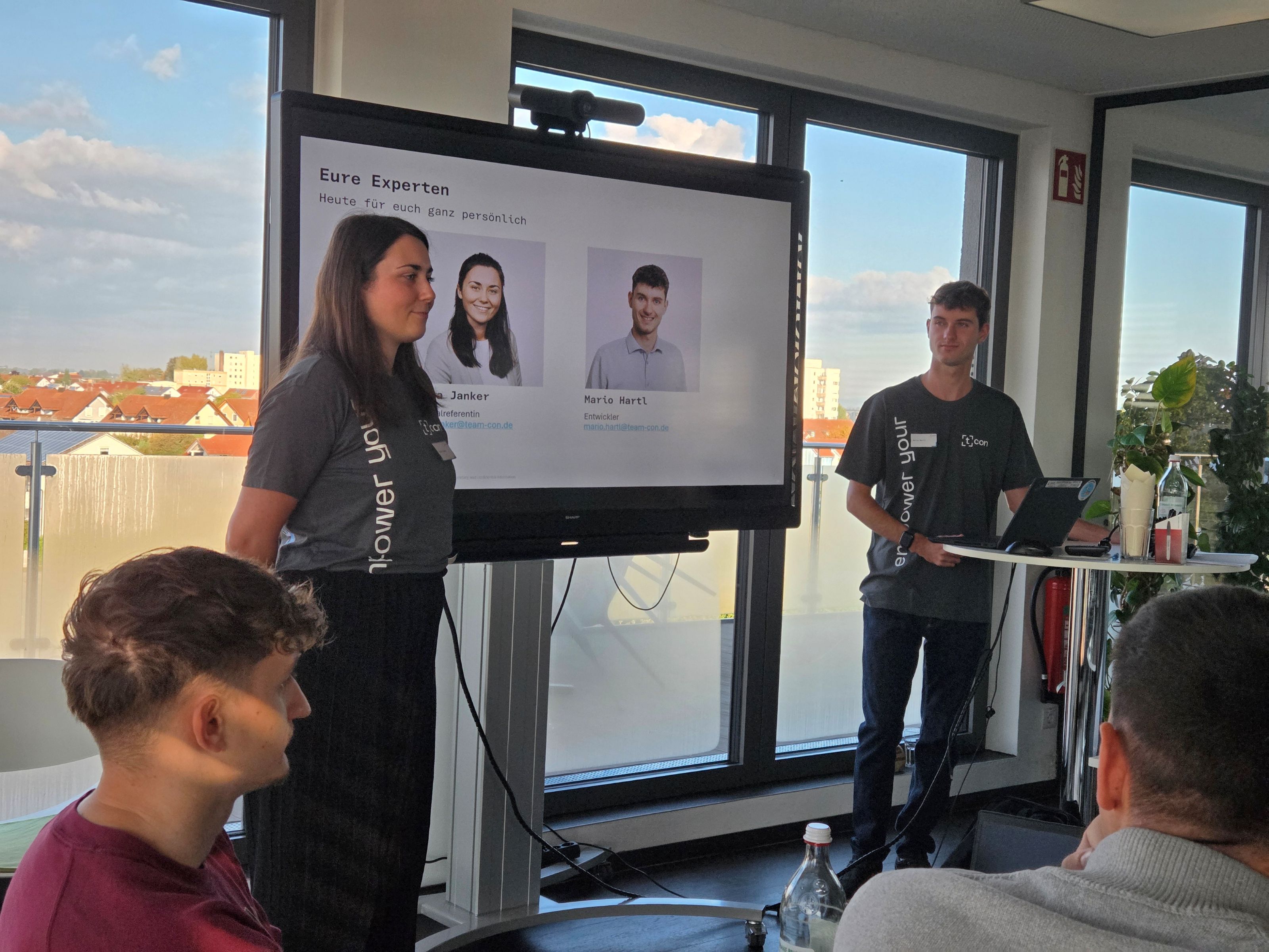 Am Mittwoch, den 1., und Donnerstag, den 2. Oktober, folgten die Abschlussklassen der EDV-Schulen gemeinsam mit ihren Lehrkräften der Einladung der Firma T.CON zum sogenannten „Promptaton“. Nach einer herzlichen Begrüßung durch Frau Elena Janker erhielten die Teilnehmenden zunächst einen kurzen Einblick in das Unternehmen.