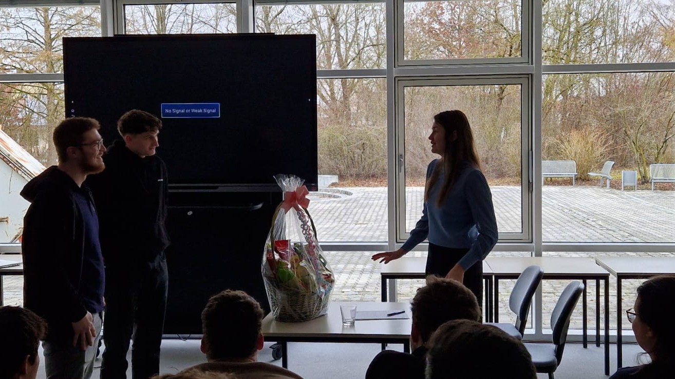Am Ende des Trainings wurde die Referentin mit einem Präsent bedacht. „Jetzt fühlen wir uns bestens auf die bevorstehenden Bewerbungsgespräche gewappnet – jemand aus der Praxis zu haben, der neben den Fakten auch aus dem Nähkästchen plaudern kann, also wirklich erlebte Situationen erzählt, ist super“, resümierten die angehenden Wirtschaftsinformatiker.
