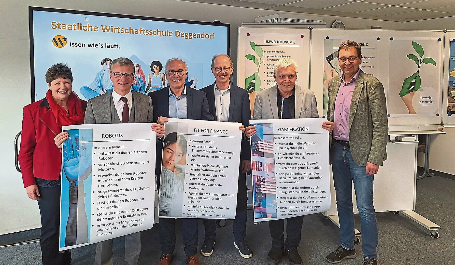 Vorgestellt wurde die neue Form der Wirtschaftsschule am Dienstagvormittag von den Oberstudiendirektoren Johann Riedl (Wirtschaftsschule), Klaus Fleder (FOS/BOS) und Ernst Ziegler (Berufsschule I), den Studiendirektoren Prof. Dr. Martin Griebl (EDV-Schulen Plattling) und Christian Alt (Berufsschule II), der Leitenden Regierungsschuldirektorin Maria Sommerer und Landrat Bernd Sibler.